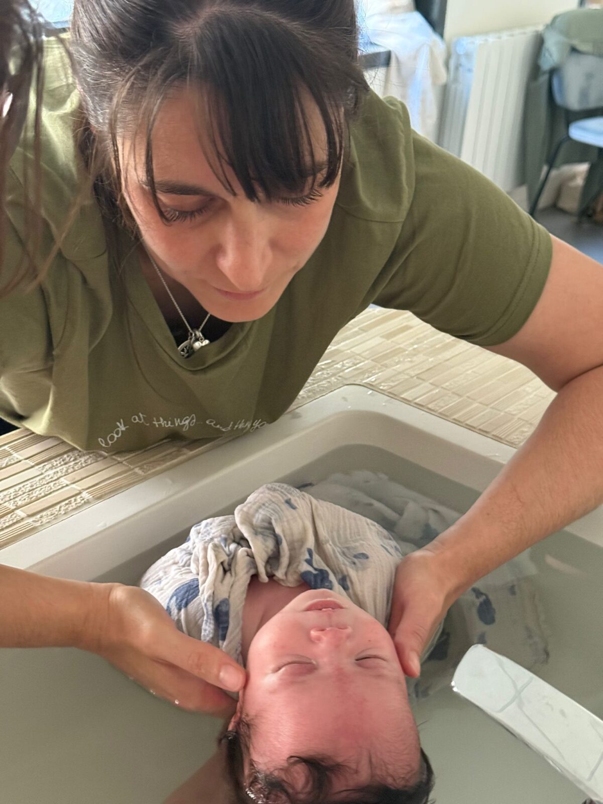 Un bain sensoriel et émotionnel pour bébé, véritable soin de transition entre vie intra et extra-utérine. Le parent est acteur.